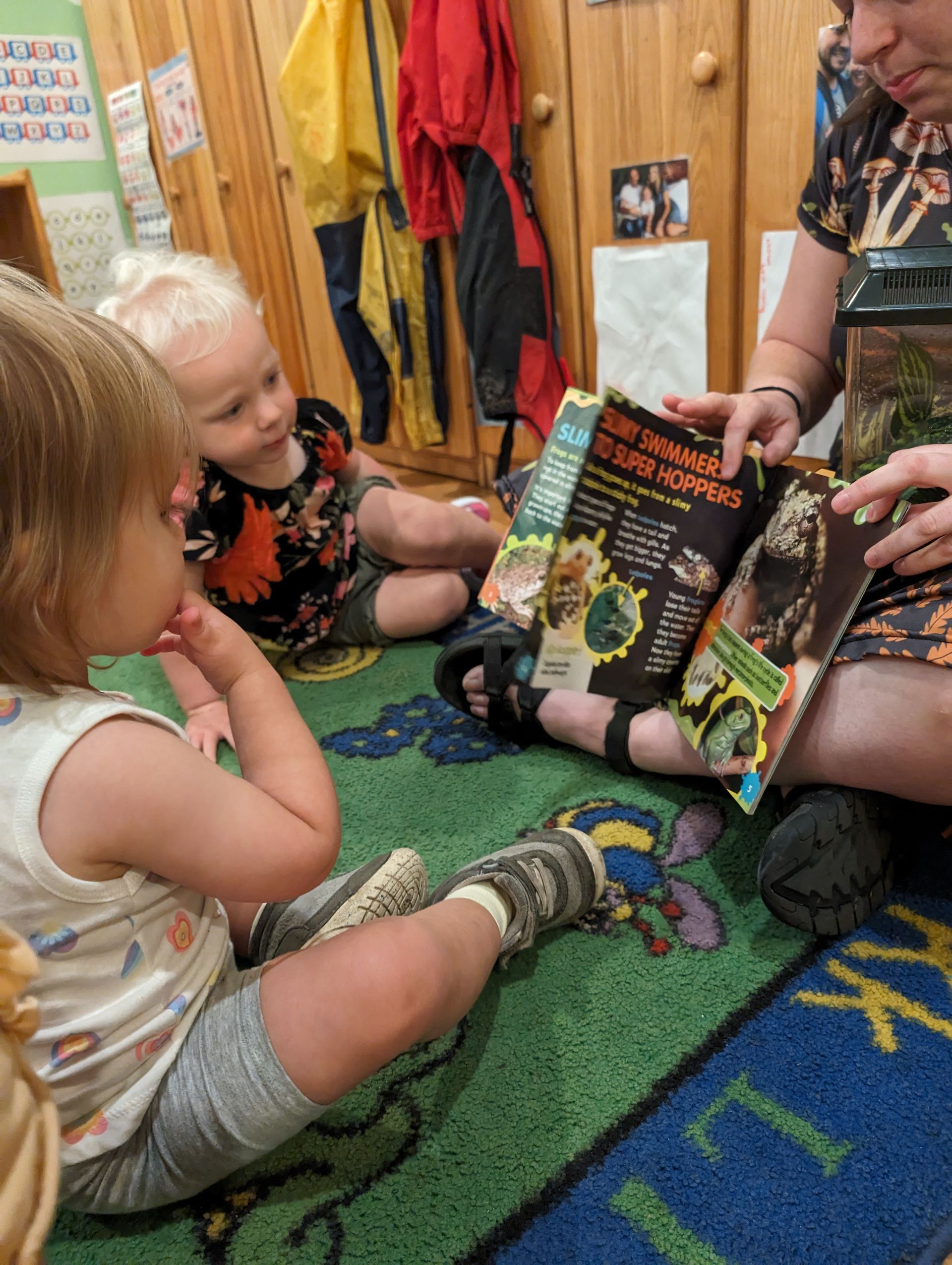 Moving up, the Sahara, Tundra, and Wetlands classrooms serve our toddlers. Soft area rugs provide a warm, safe footing for our little crawlers and walkers. Age-appropriate development areas are set up throughout the room for activities such as hand-eye coordination, language, problem-solving, and large-motor skills. Soothing music is playing quietly in the background.