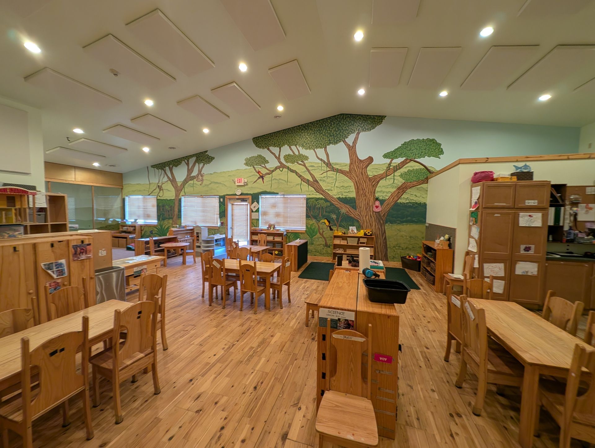 Welcome to Little Explorers, where our 16,000-square-foot state-of-the-art facility is designed to provide children with the most comfortable and engaging learning environment. Our facility features in-floor heating throughout to ensure our little walkers and crawlers stay cozy. The classrooms feature painted murals that create an engaging, stimulating environment. Each classroom is equipped with specially designed Amish furniture, "squatty potties," and custom-built sink cabinets tailored to the age groups they serve. The sheltered drop-off area ensures safe, convenient arrival and departure for all. In the following sections, we will explore our indoor and outdoor areas in more detail, as well as the comprehensive safety measures we have implemented to keep our children safe.